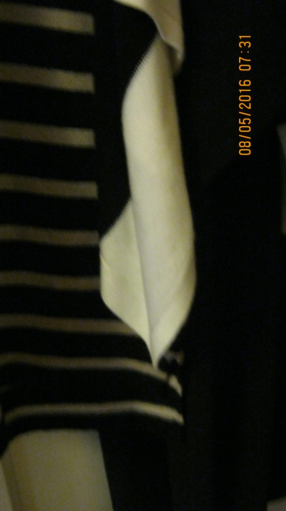 I wanted to look nice, but also be comfy in case I had to do something like arrange chairs before the ceremony, so I decided to meet the challenge by putting on my beige mini trench coat over my short black Calvin Klein dress. I then accessorized it with black knee-highs, black men’s lace-up shoes, dark Audrey Hepburn shades and a gold “Betsey” Betsey Johnson necklace. After school, while waiting at the bus stop, a man asked me if he could give me a compliment. When I told him he could, he said, “You have a very European way of dressing. You have a lot of style.” Tired from the long day, but elated by the kind words, I was happy my choice was the right one and elicited such a positive response.