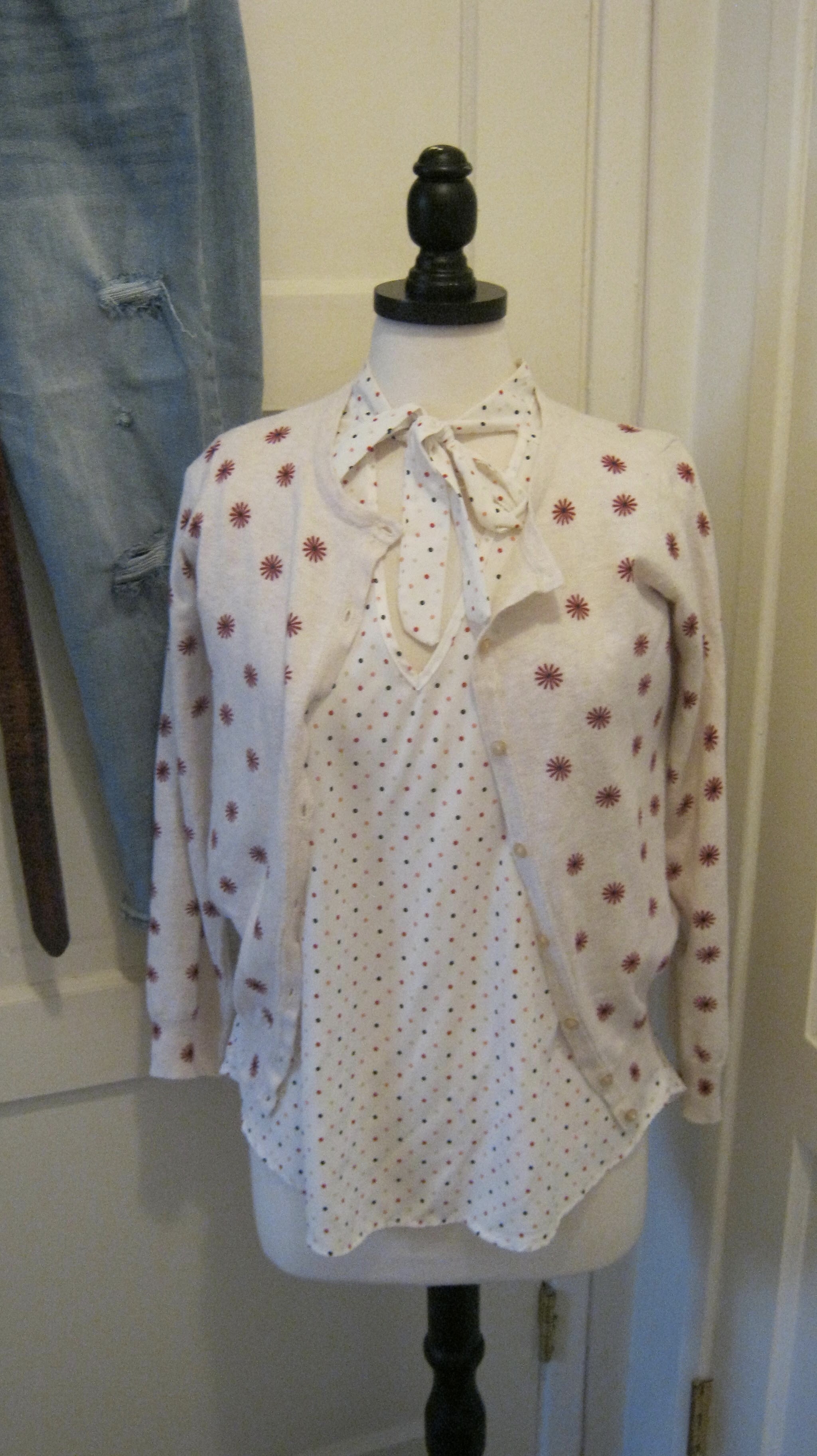 Since I wanted to look both professionally chic and comfortable I borrowed the skinny Jeans uniform of my co-workers, swapped them out for a wider, more distressed version from Forever 21 and mixed and matched them with various blouses and cardigans for my own back-to-school uniform. Slightly retro, yet feminine and contemporary I feel it’s definitely a go-to look I can easily coordinate for a busy week on campus.