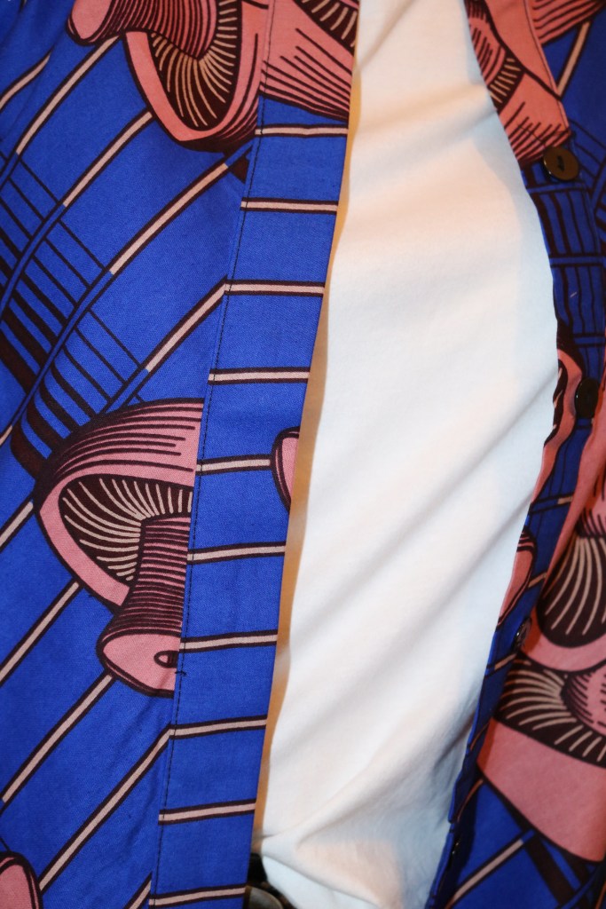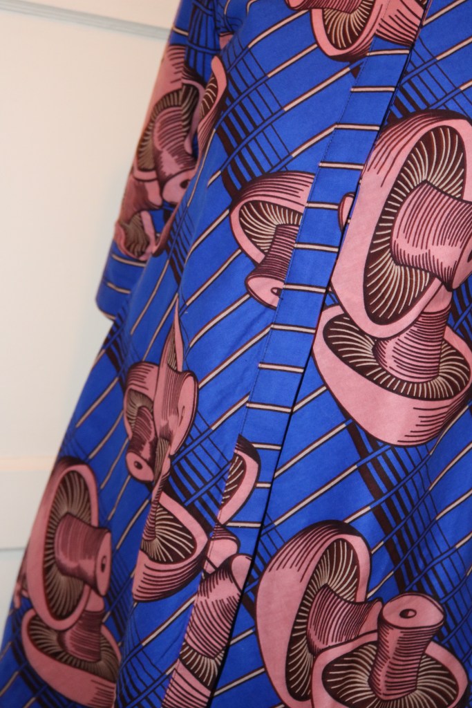 Made out of 100% washed cotton Kitenge cloth sourced from Tanzania the mid-weight fabric stands away from my body elegantly. Side pockets and a row of black buttons sewn down the front complete the spacious silhouette.