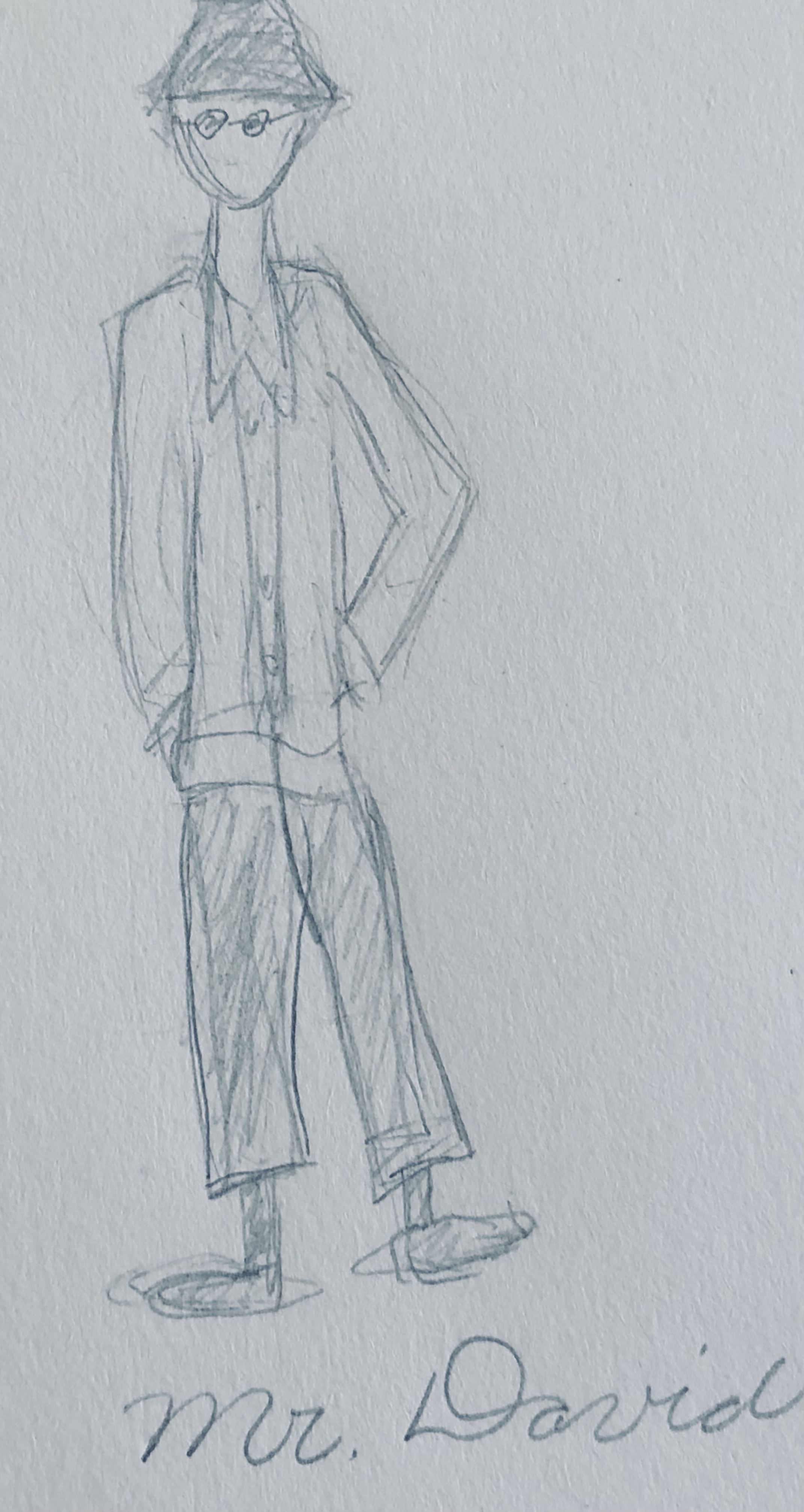 Mr. D. (White button-down worn over cropped black pants, black socks, sneakers)