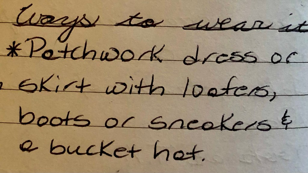 Combine a patchwork dress with loafers, ballet flats, boots, or sneakers, a jacket and a bucket hat.
